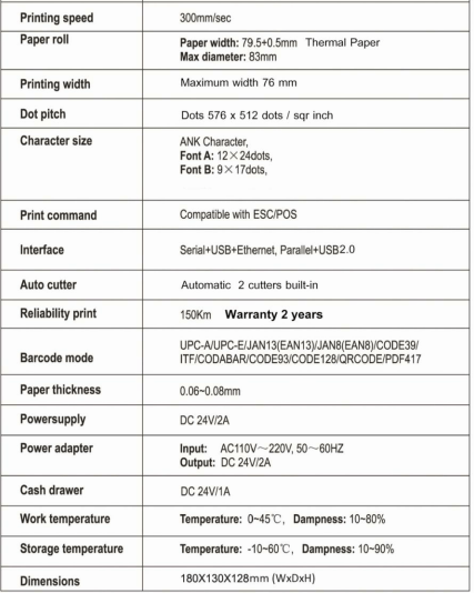 - วิธีการพิมพ์ : พิมพ์ระบบความร้อน (Termal Line printing)